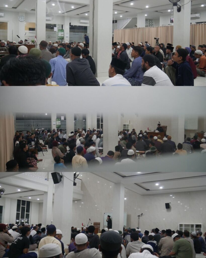 Suasana kajian terasa hening dan khidmat. Hanya suara hujan yang turun dan lantunan ilmu yang saling bersahutan. Setiap nasihat terasa lebih dalam, meresap ke relung hati para jamaah. Malam itu bukan sekadar pertemuan biasa, melainkan momen muhasabah—saat hati diajak untuk jujur menilai diri dan memperbaiki langkah.
