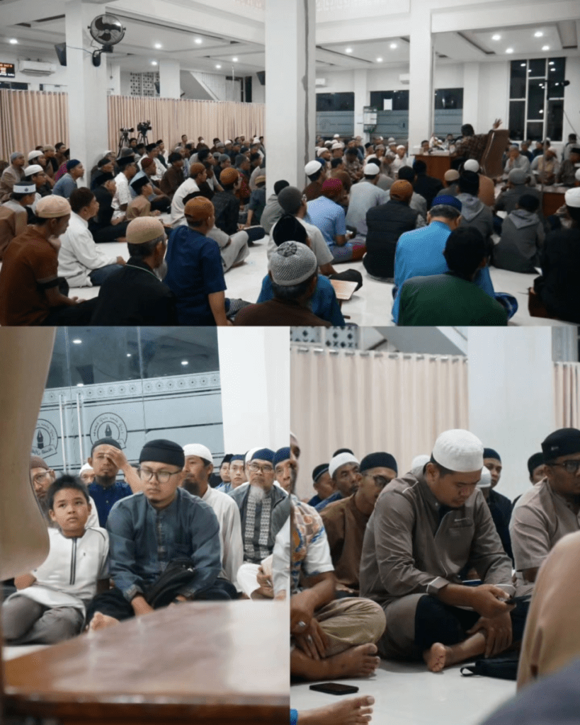 Suasana kajian terasa hangat, akrab, dan penuh tawa. Dengan gaya penyampaian yang humoris namun sarat makna, Ustadz Abul Aswad mengajak jamaah untuk memahami bahwa musibah bukan semata-mata tentang air yang meluap, tetapi juga tentang hati yang perlu kembali taat, bertobat, dan mendekat kepada Allah ﷻ.